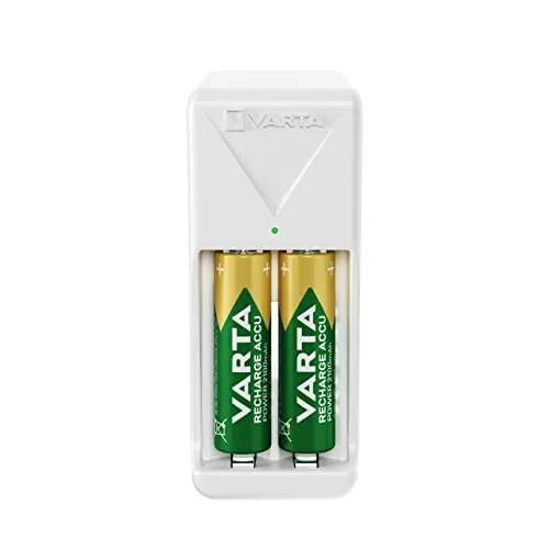 VARTA Mini Charger – Carregador de Pilhas AA/AAA NiMH com 2 Pilhas 2100mAh Incluídas